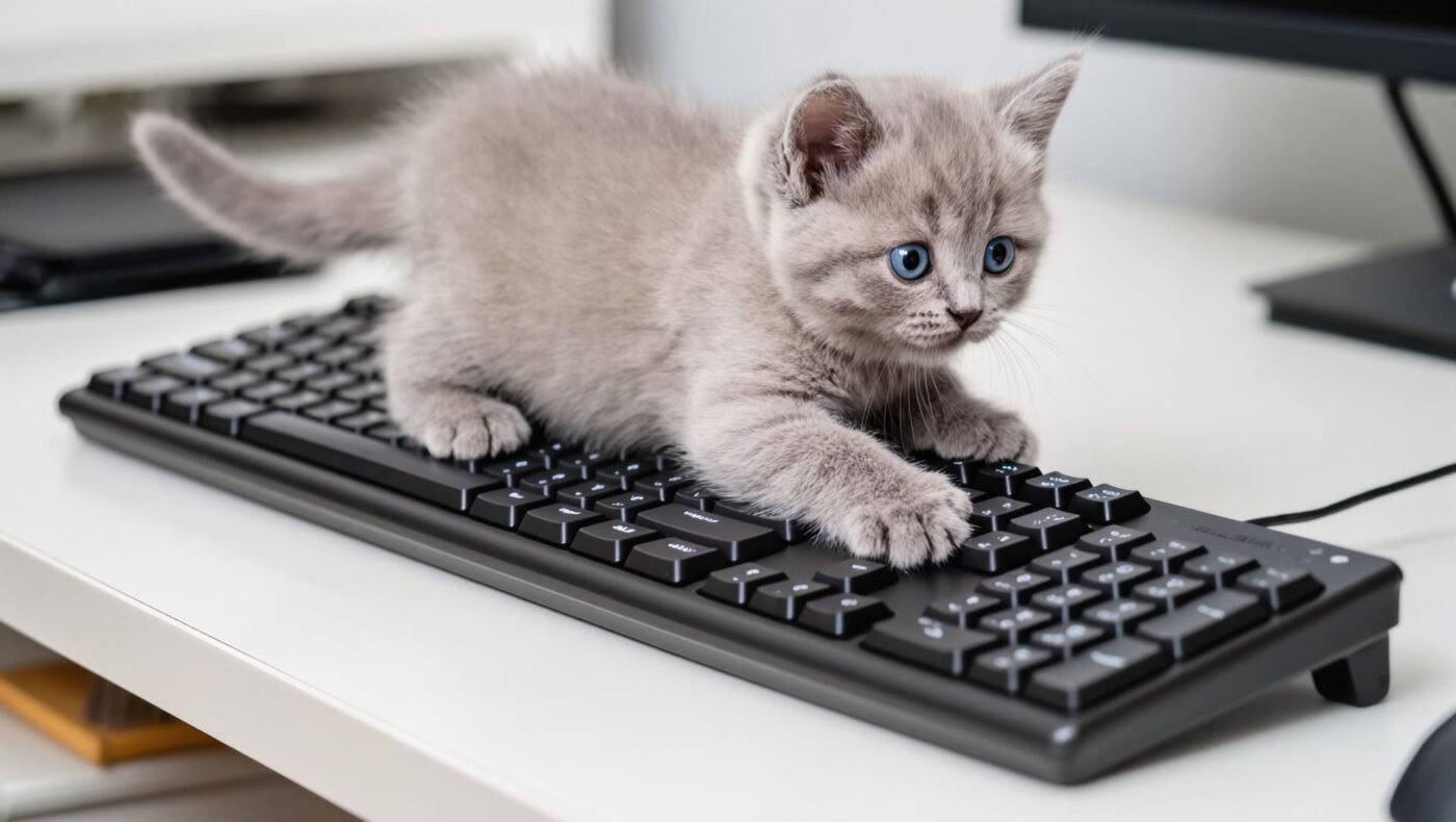 She jumps right onto the keyboard, types out a string of random letters like: “qqqqqqpppppppp1234!!!”, and then flops down across the space bar.